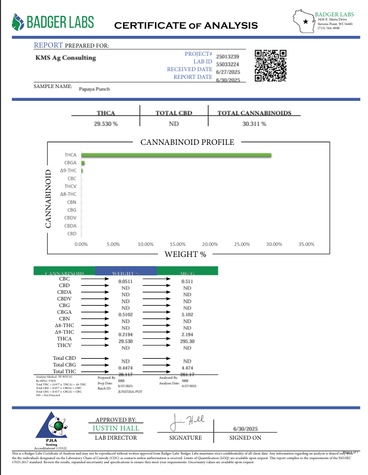 Papaya Punch THCA Flower is an indica-dominant hybrid that blends Purple Punch with Papaya for a sweet, fruity profile. With dense, bright green buds and a smooth taste, this strain is sold wholesale by the pound, half pound, or quarter pound. Available wholesale through GrowHouseExotix. It comes unbranded and ready for private labeling, ideal for smoke shops and resellers.